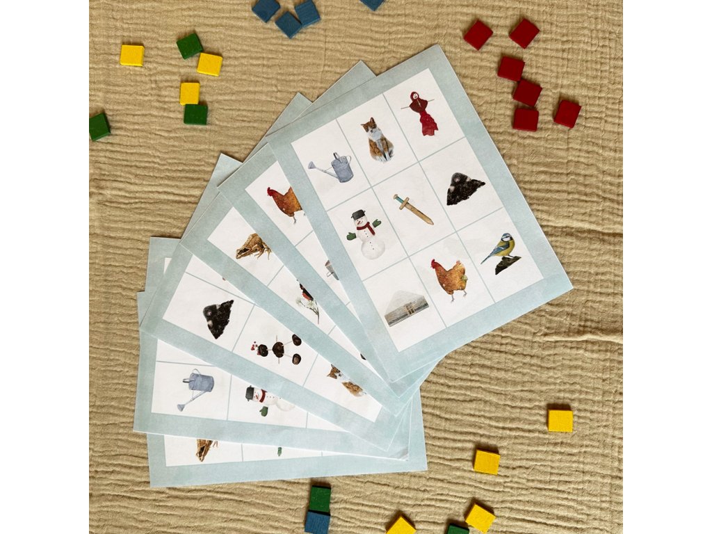 Zdarma k pexesu dostanete také pdf dokument k vytištění s hrou Bingo pro šest hráčů. Hra Bingo obsahuje stejné motivy jako pexeso. Budete tak mít možnost využít pexeso hned dvakrát!